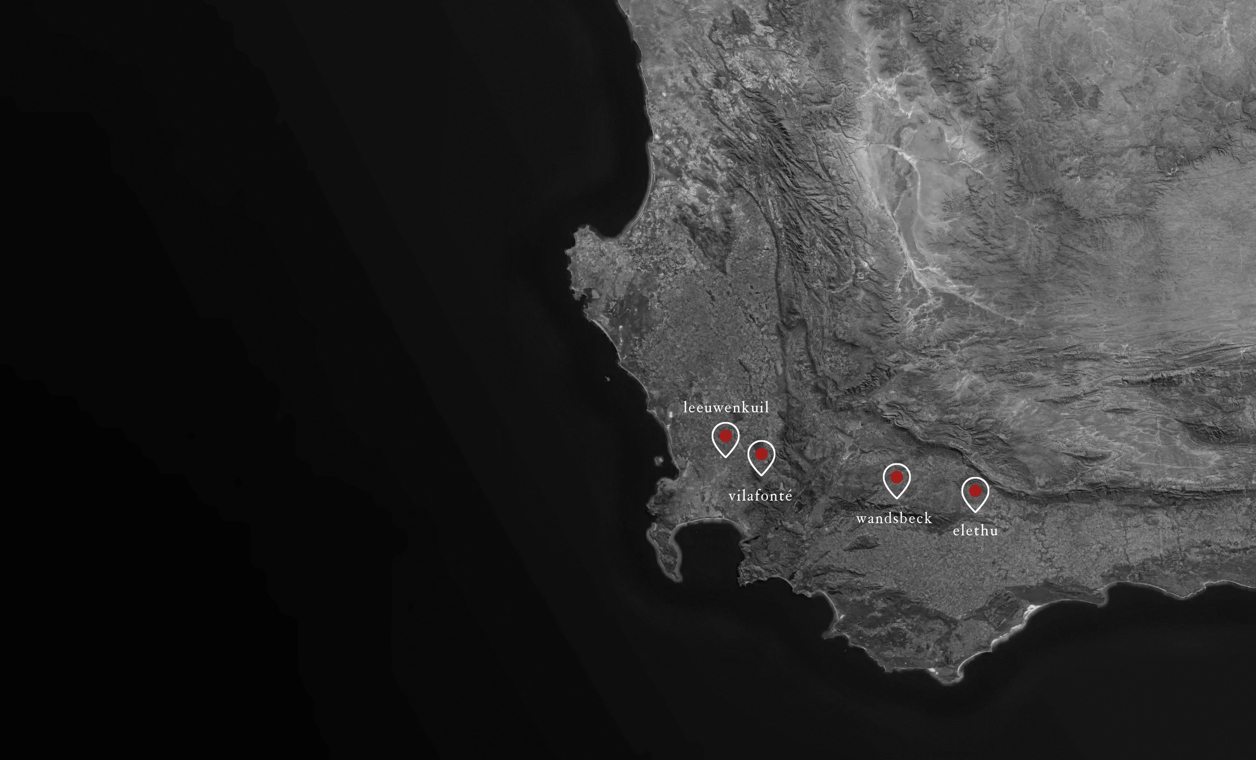 Founded in 1997, the 42ha estate on the bench of the Simonsberg Mountains with its unique vilafontes soils, served as the fuse to our vision. Cabernet Sauvignon, Cabernet Franc, Merlot and Malbec confirmed its affinity to the ancient soils. Planted at high density, these vines adhere to the exquisite struggle; encouraging smaller vines, lower yields and highly concentrated fruit. Vilafonté wines are exclusively from grapes grown on our property.